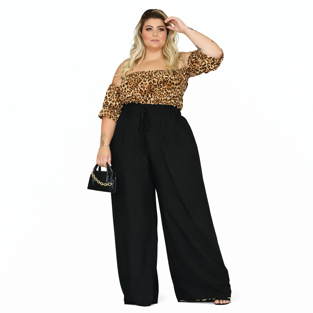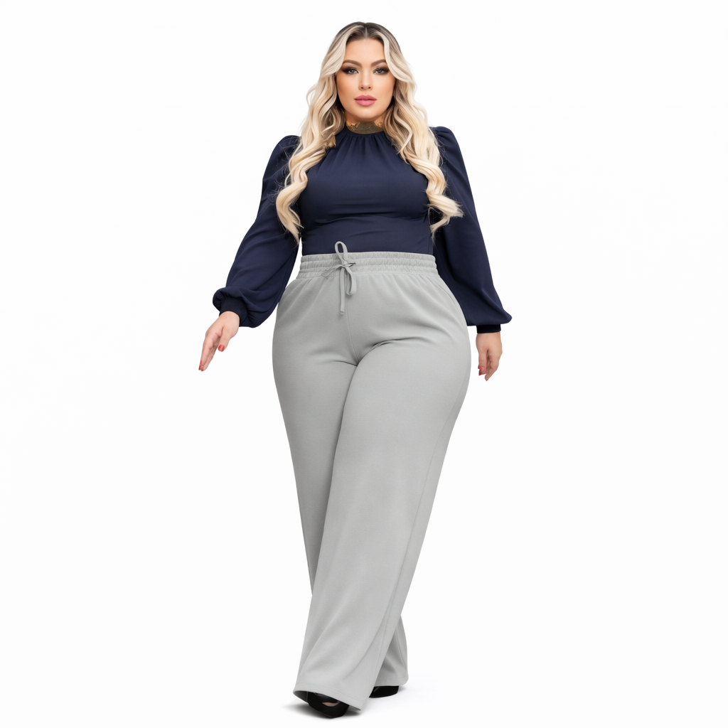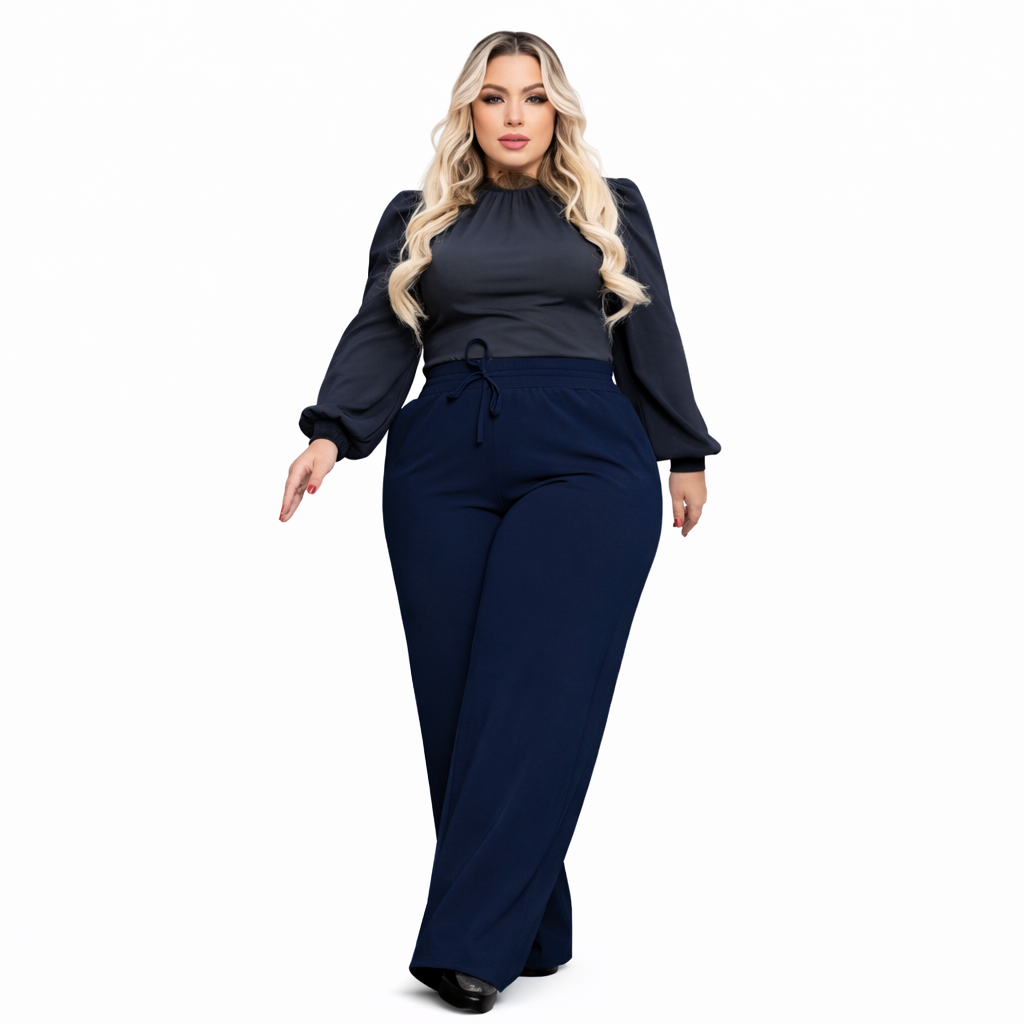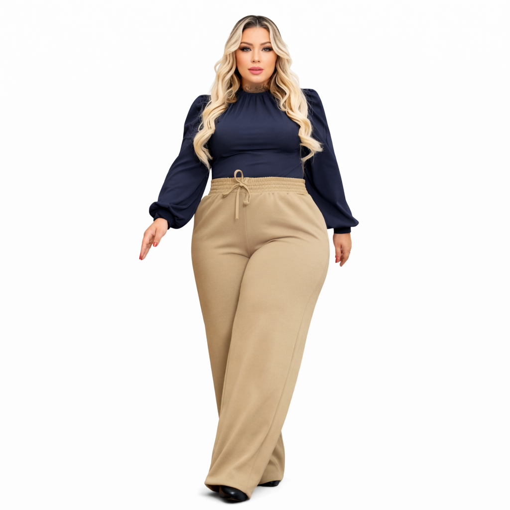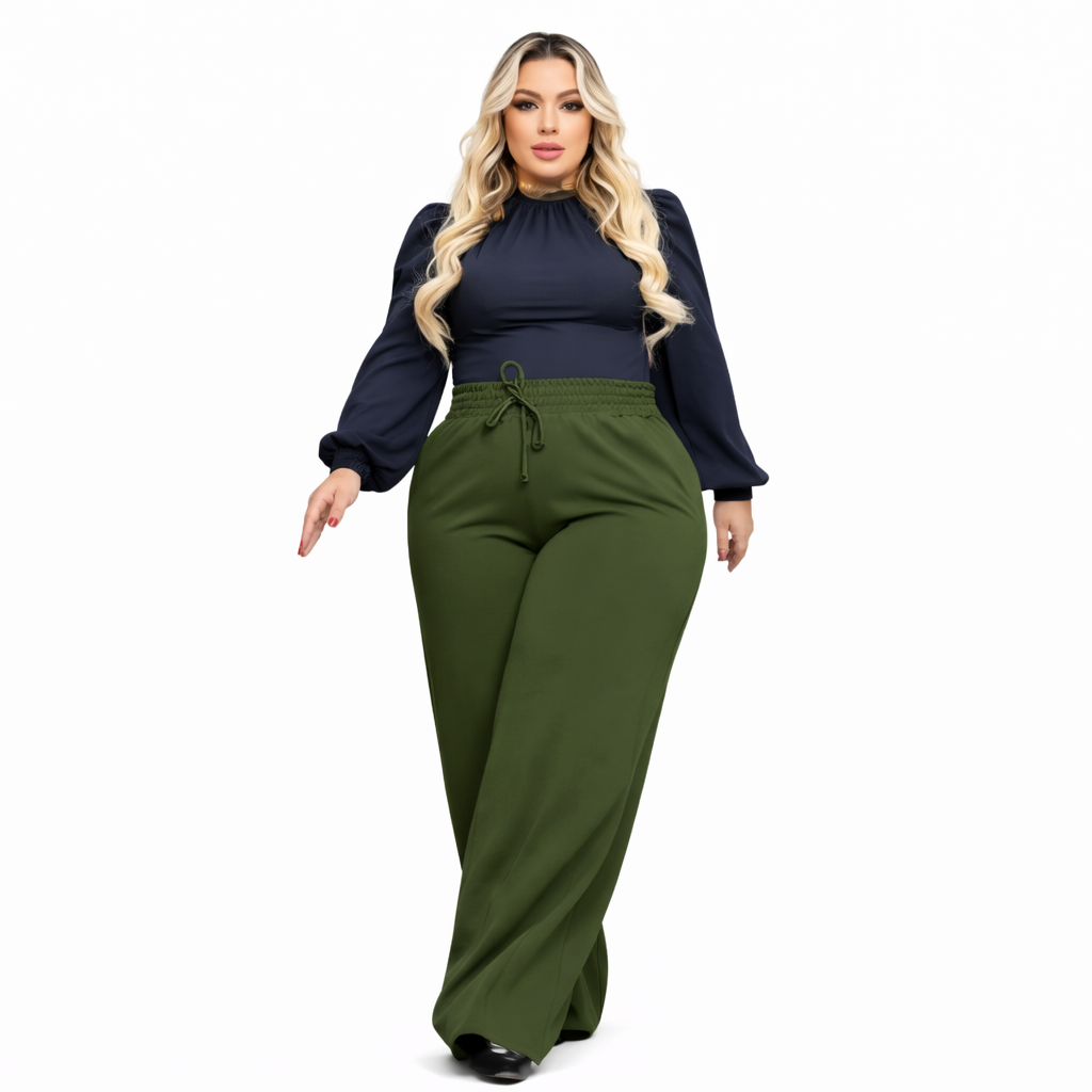 Calça Pantalona Feminina Plus Size Cintura Elástica Serena