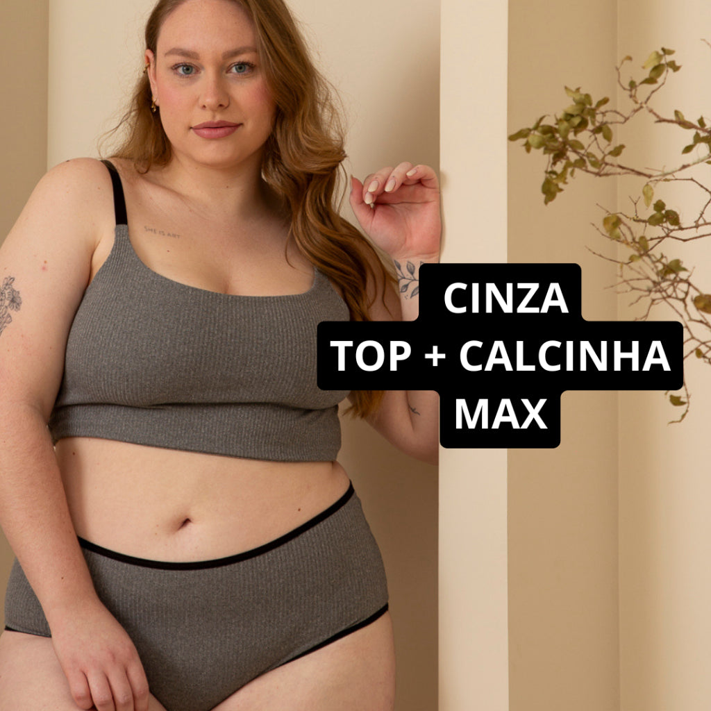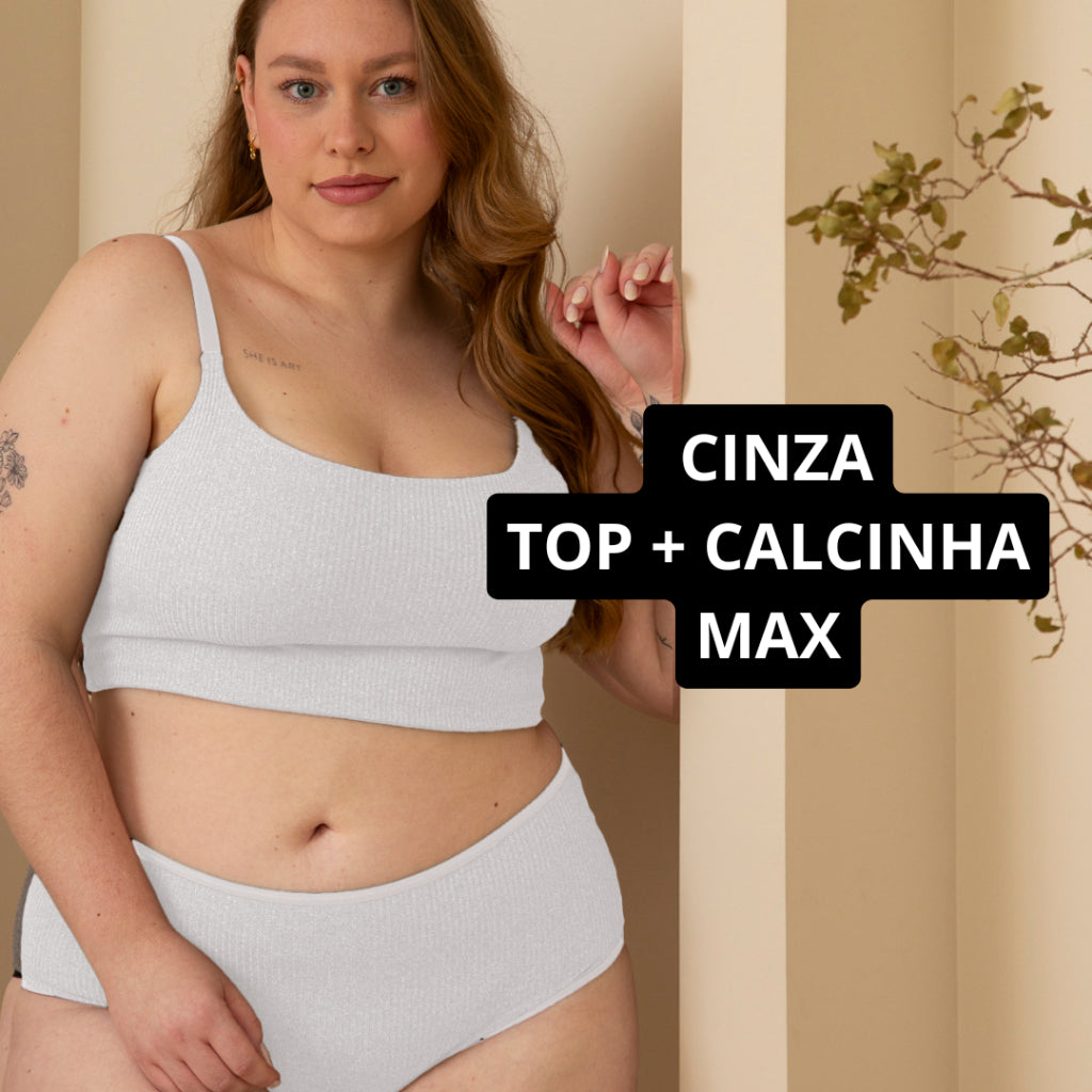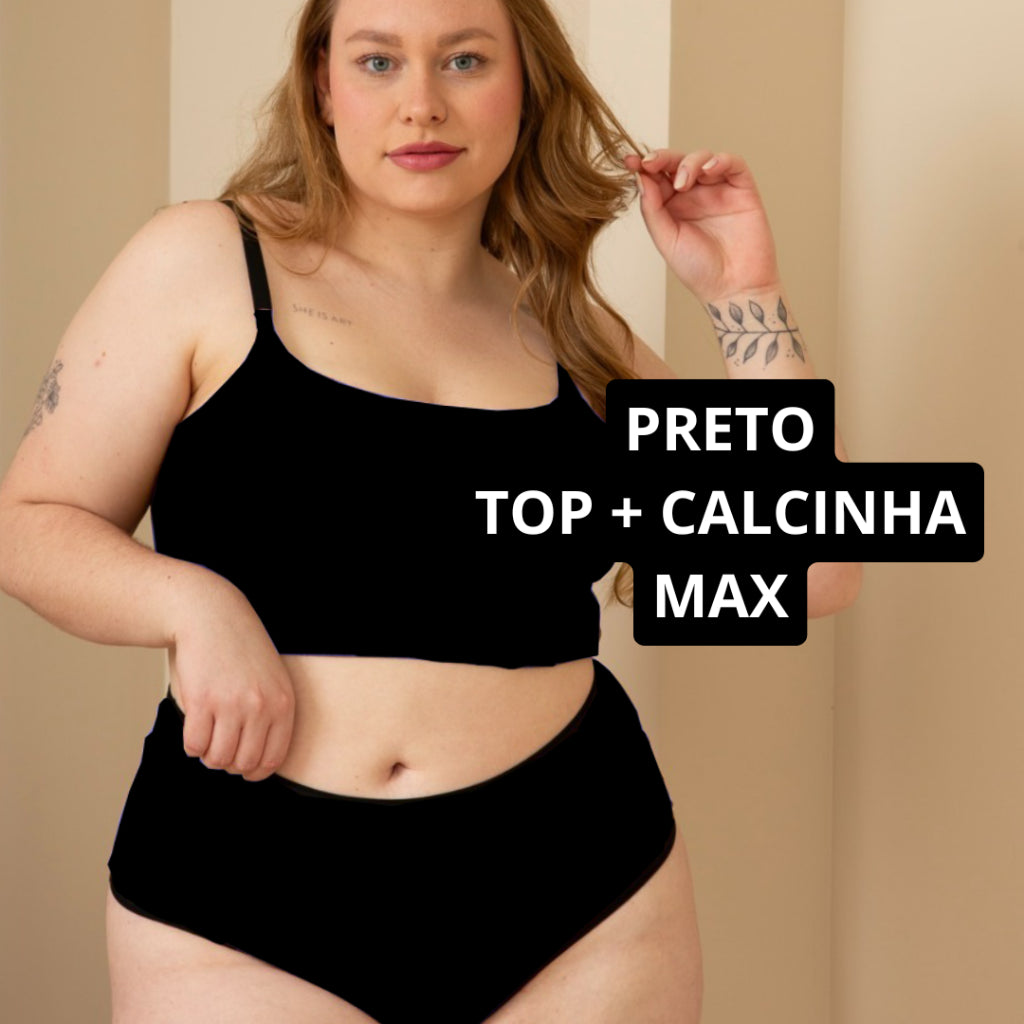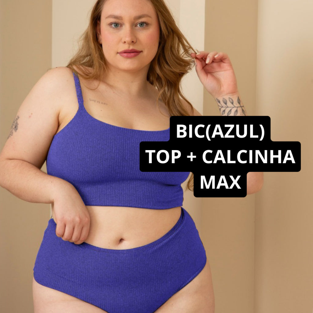 Conjunto Plus Size Top Alcinha Reforçado e Calcinha Cintura Alta Shortinho Lingerie Feminina